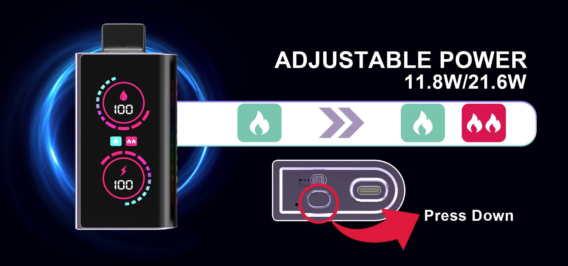 Adjustable Wattage: Customize your usage intensity with power settings ranging from 11.8W to 21.6W, catering to both subtle and robust preferences.